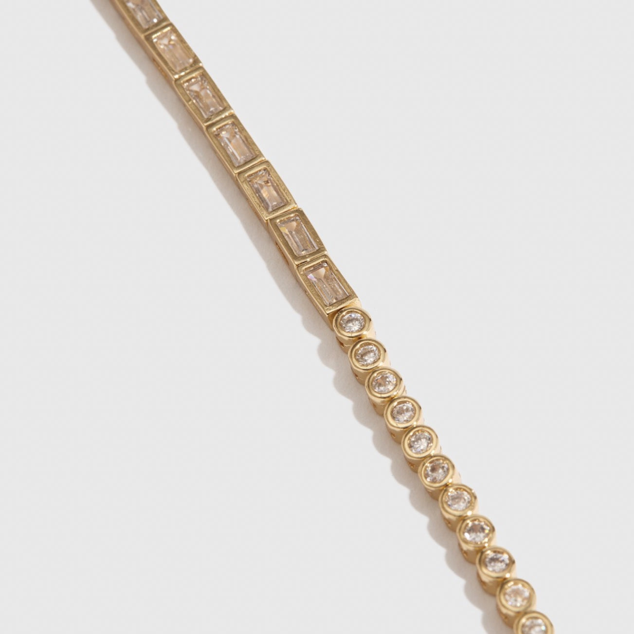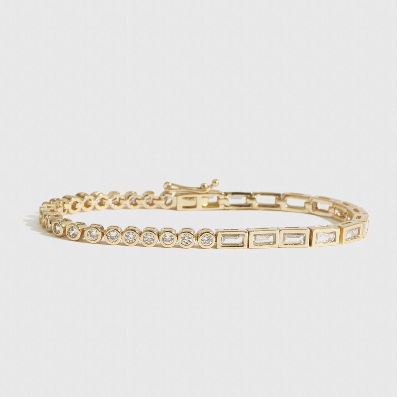 This iridescent Blair Tennis Bracelet will add a sophisticated sparkle to your outfit. Featuring unique half-and-half metal elements and two different shaped settings, this bracelet is sure to turn heads.