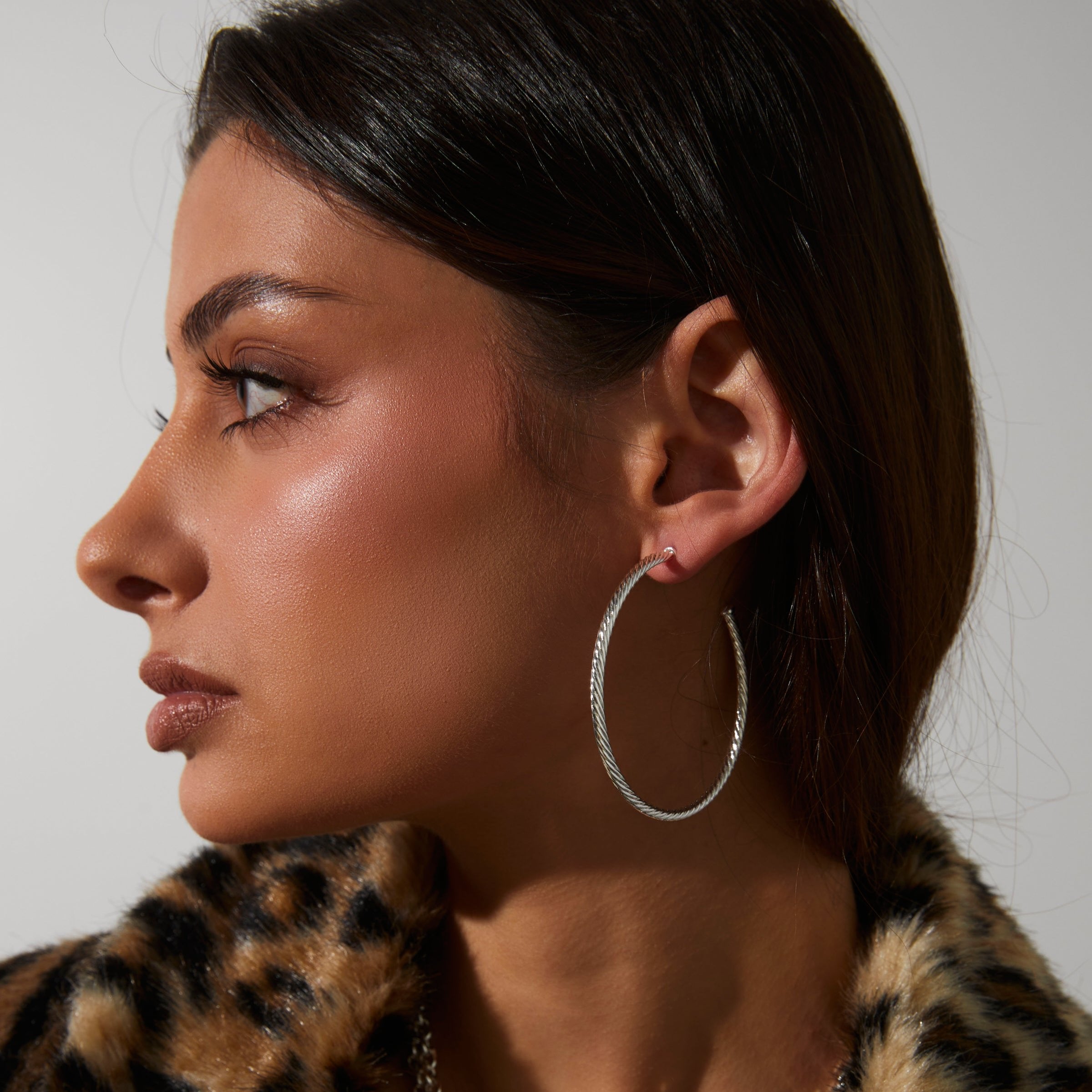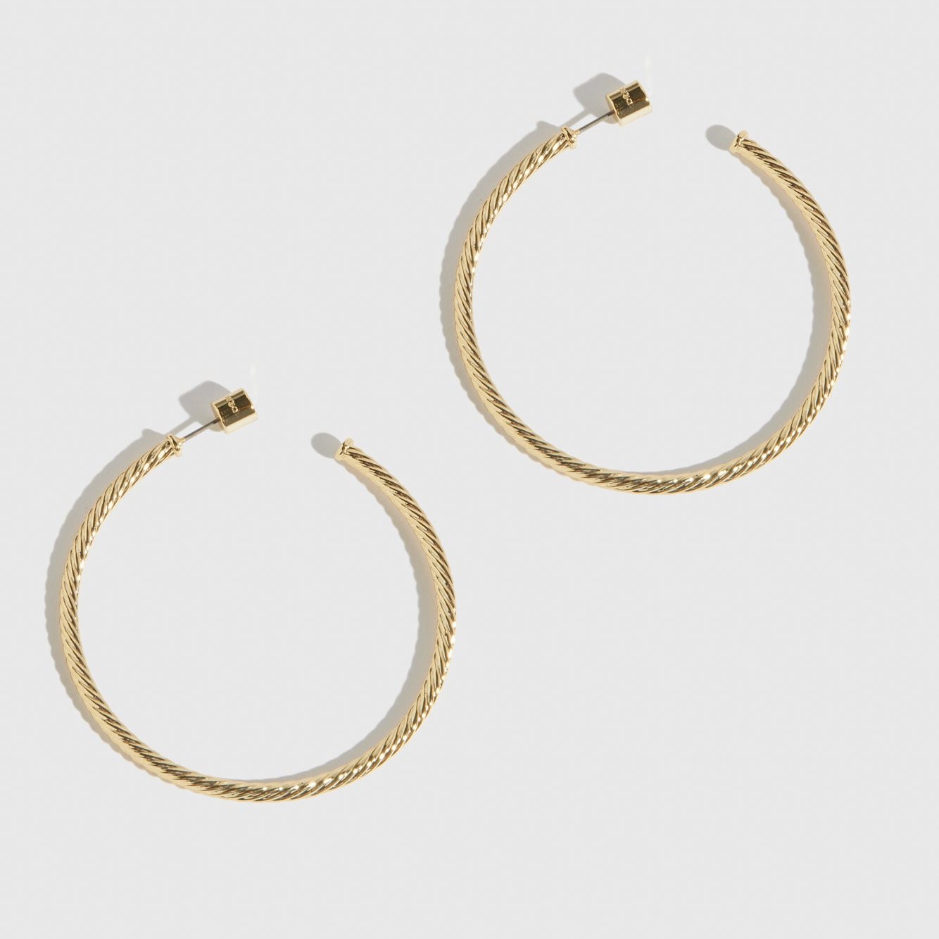 Make every outfit pop with these large yet delicate hoops, featuring a braided texture for a timeless look. Comfortable enough to wear every day as the ultimate finishing touch.