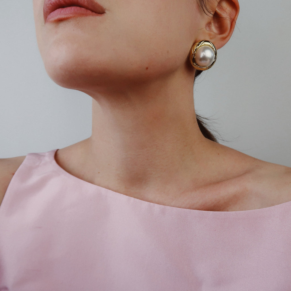 A modern take on retro trend, featuring a glass pearl and a quilted outline.
