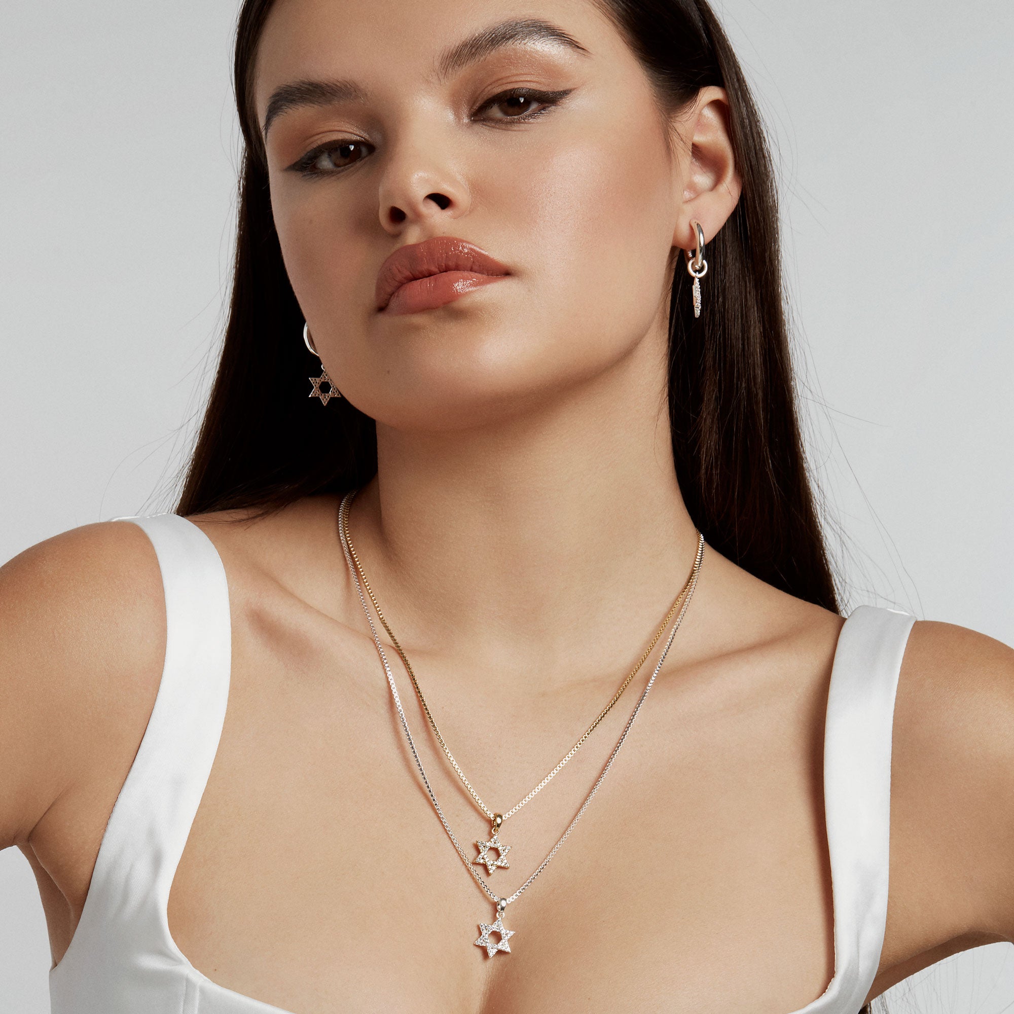 Experimenting the various possibilities of mix and match with our charms hoops. With the minimalist details of this Star of David, the Asher charm is an alluring option for your hoops. Switching charms has never been this easy.