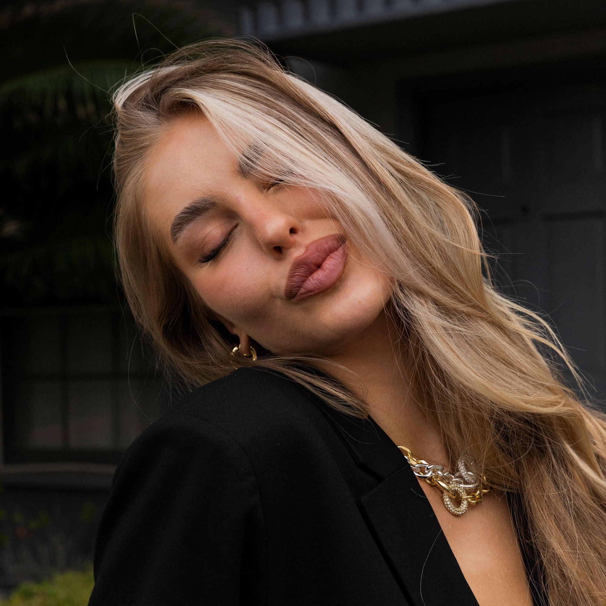 Updated staple necklace that mixes different designs, proportions and enhances the contrast with bold metal and crystals. The contrasting aesthetic is definitely an eye catcher for this staple piece. A must have for S/S 23. This necklace was designed with oversized oval squared links paired with encrusted metal rings.