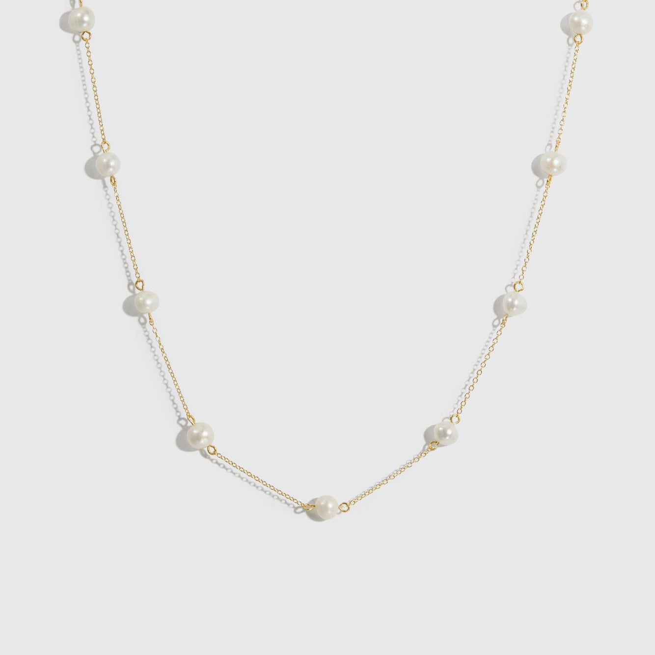 Elevate your style effortlessly with the Pearls By The Yard Necklace, featuring delicate pearls spaced along a fine chain for a timeless, chic look.