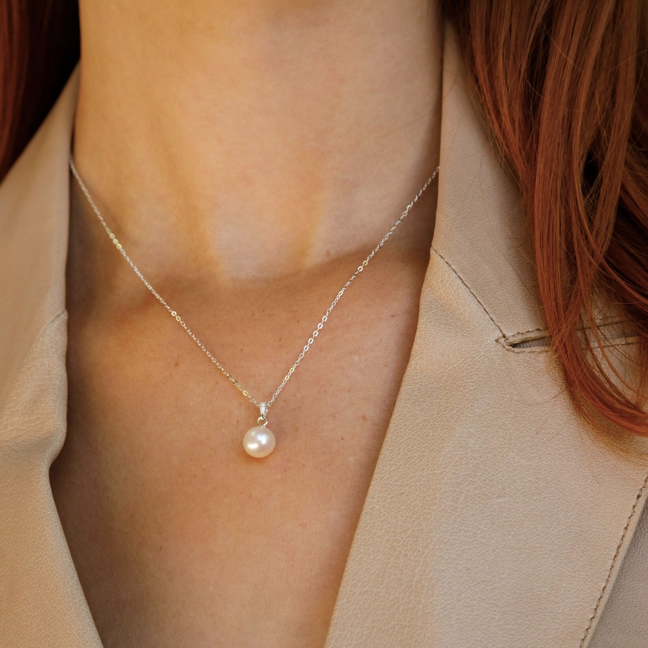 Indulge in elegance with this luminous white freshwater pearl necklace, the perfect match for any occasion. Featuring a timeless gem and a blend of classic and contemporary design, it is thoughtfully curated to highlight your unique style and leave a lasting impression of sophistication.
