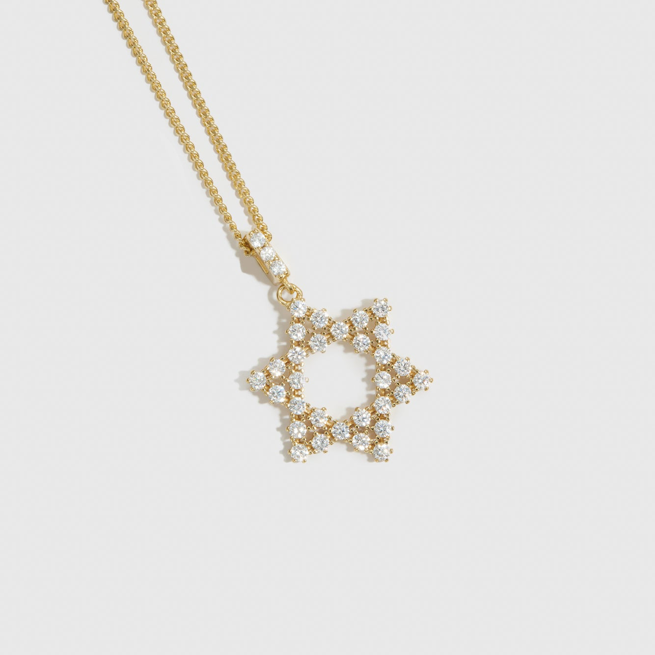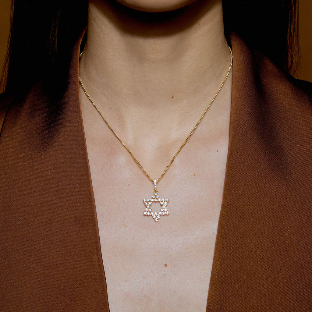This refined Star of David pendant embodies timeless elegance and spiritual significance. Meticulously crafted with sophisticated design, it serves as a meaningful expression of faith and personal style, perfect for any occasion.