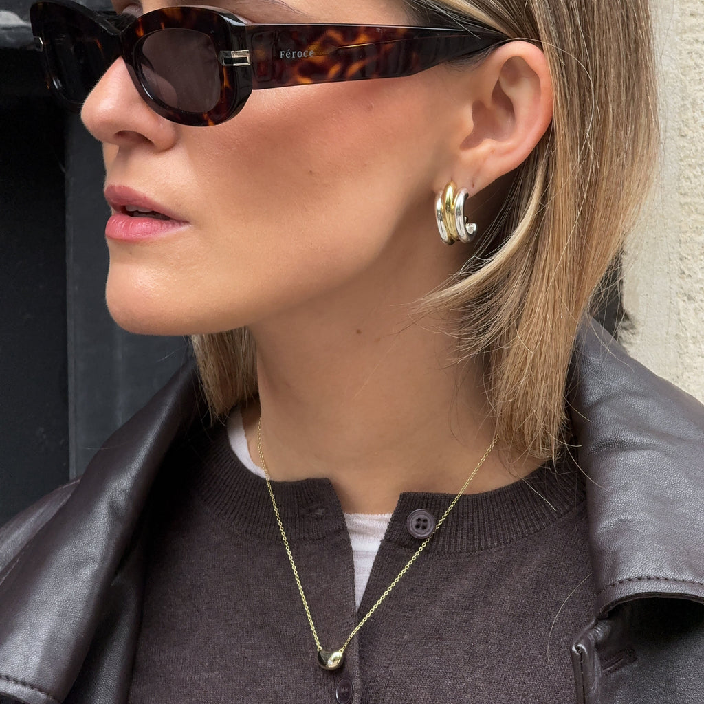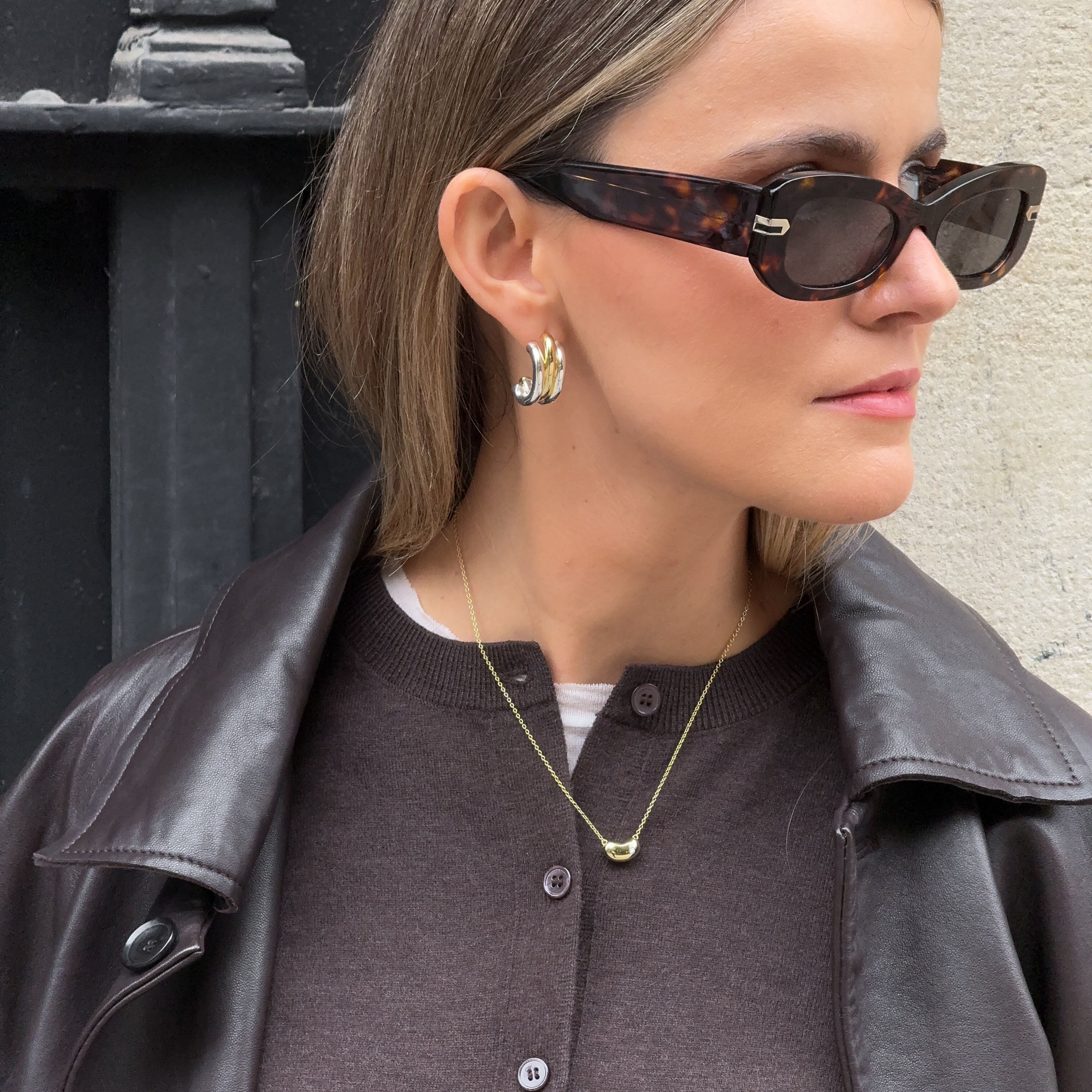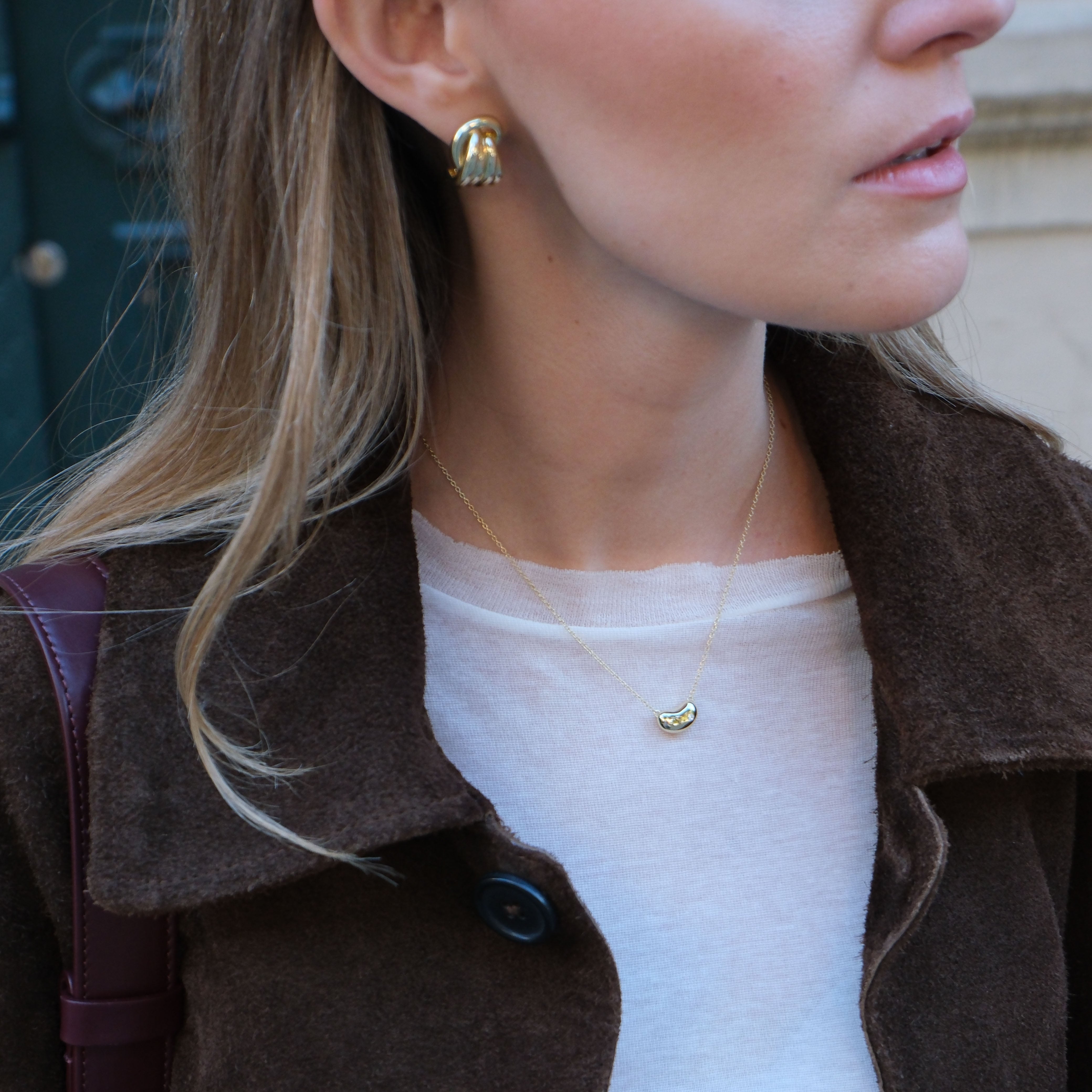 Designed in collaboration with Spanish talent Sara Yaben, this delicate and unique pendant necklace features a sculptural bean set with a sparkling, pure white stone.