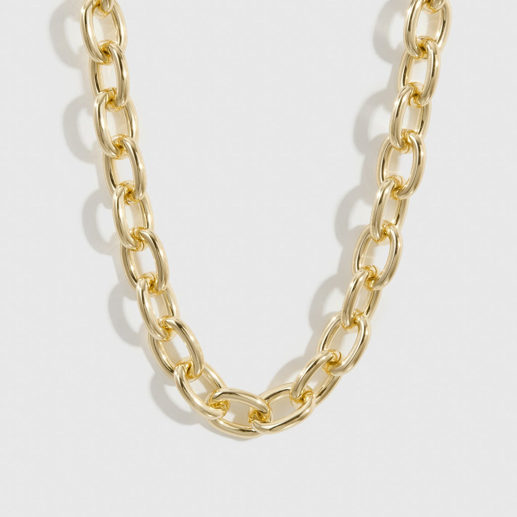 Indulge in the opulence of our Oval Link collection, where thick, luxurious links adorn your ears, neck, and wrists.
