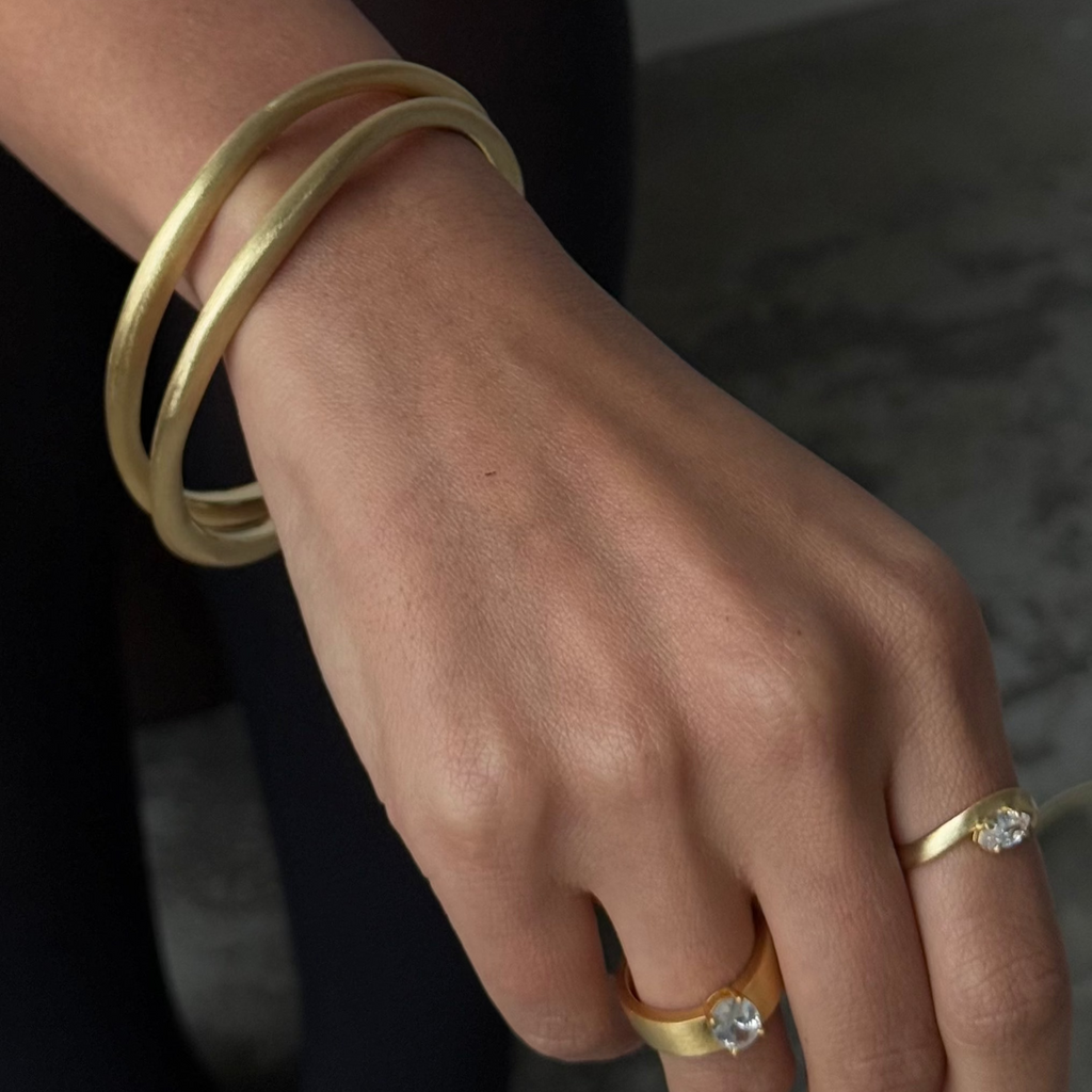 An organic-inspired silhouette with a fluid shape that evoke an handcrafted vibe.