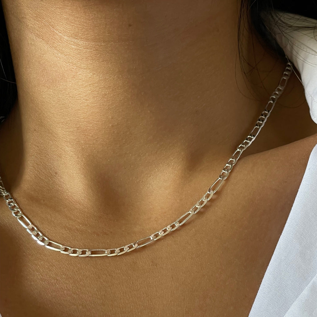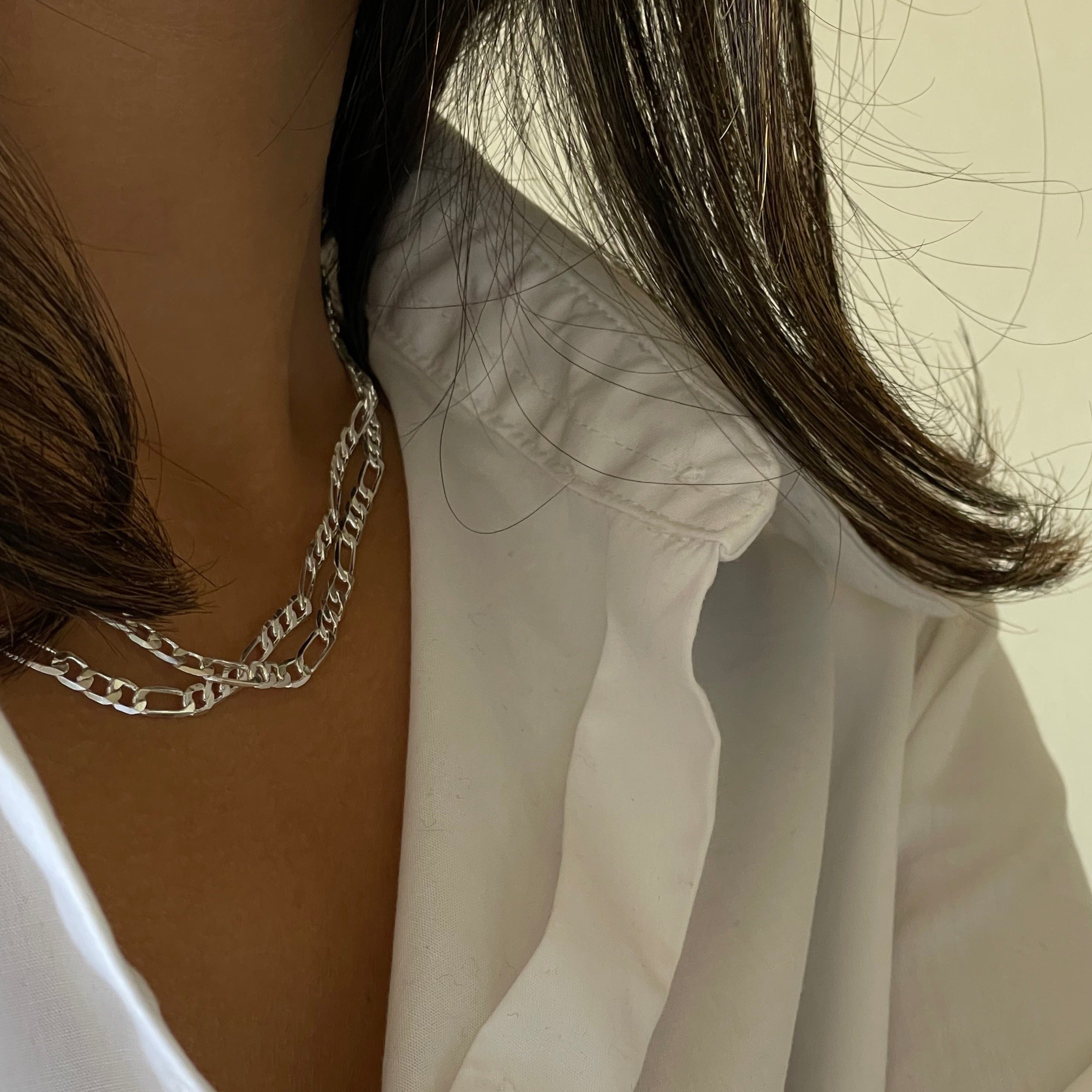 Your new go-to, the Figaro necklace is handcrafted by the best jewellers using the finest solid stainless steel, Silver, and sold with the fairest price. Our voluminous and vivacious Figaro Necklace is the perfect addition to DRAE's glamorous collection.