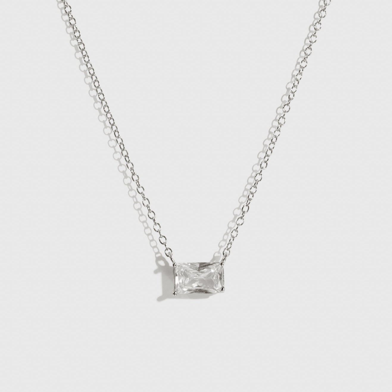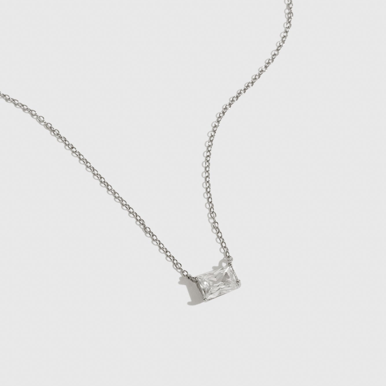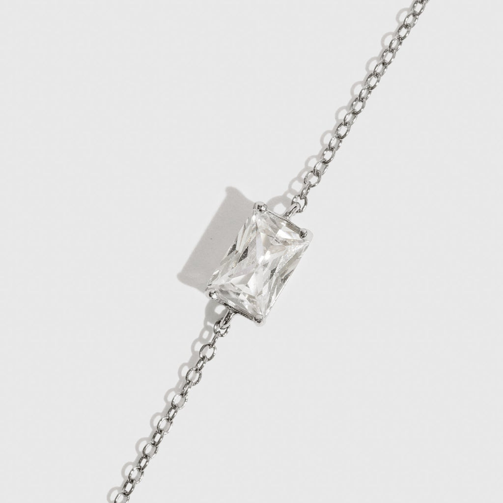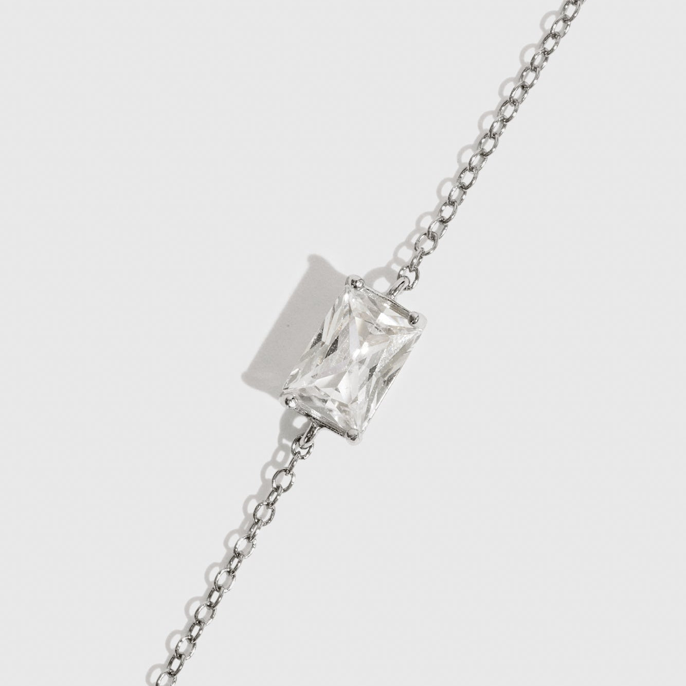 Pure White Baguette-Cut Cubic Zirconia diameter: 5 mm x 8 mm.
