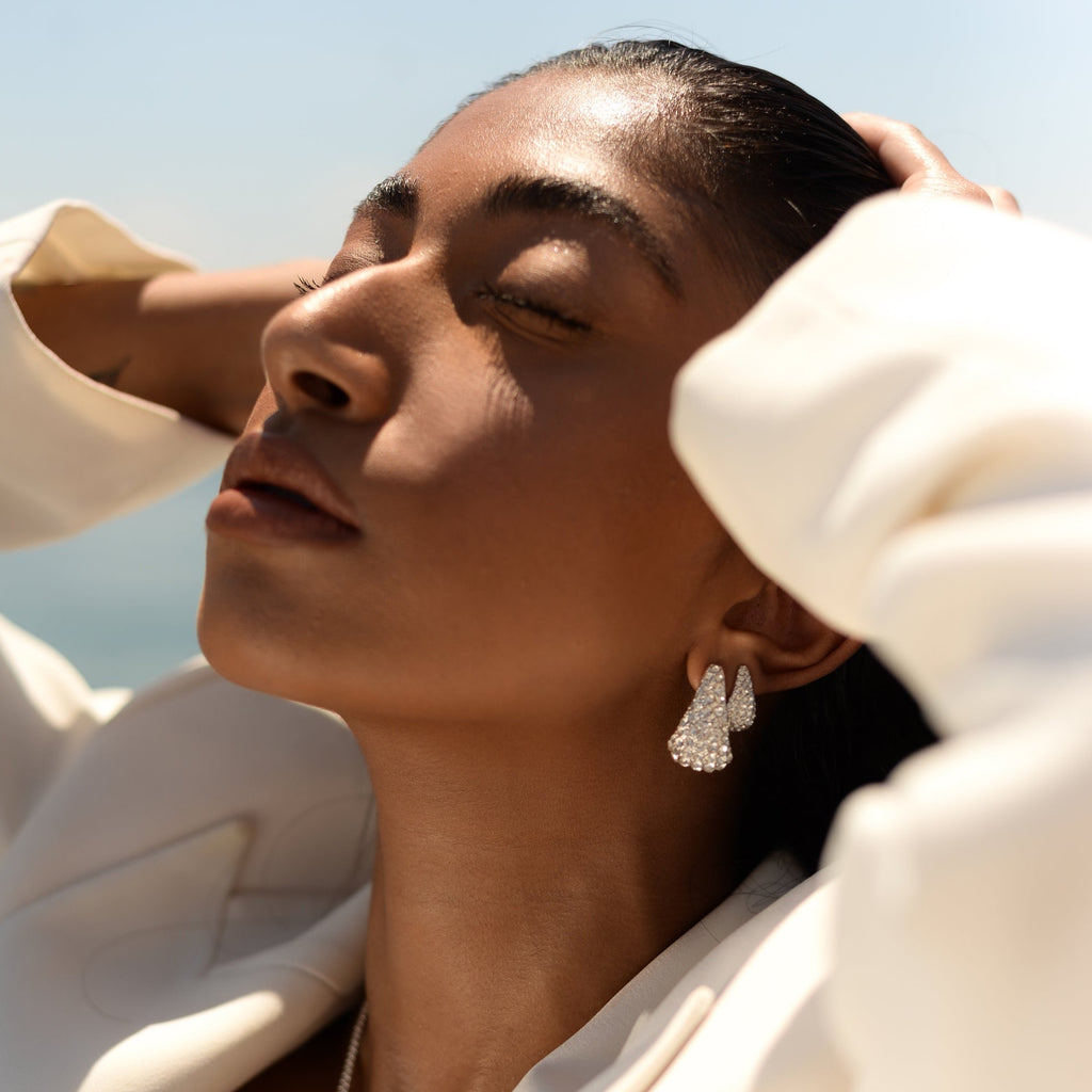 Make a statement in our Hira earrings. Perfectly paired with the bolder version, these unique raindrop design earrings are now trending. Dress them up for night or keep it simple in the day; no matter how you style, you're sure to turn heads. Hira means "diamond" in Bengali - and these earrings are just that.