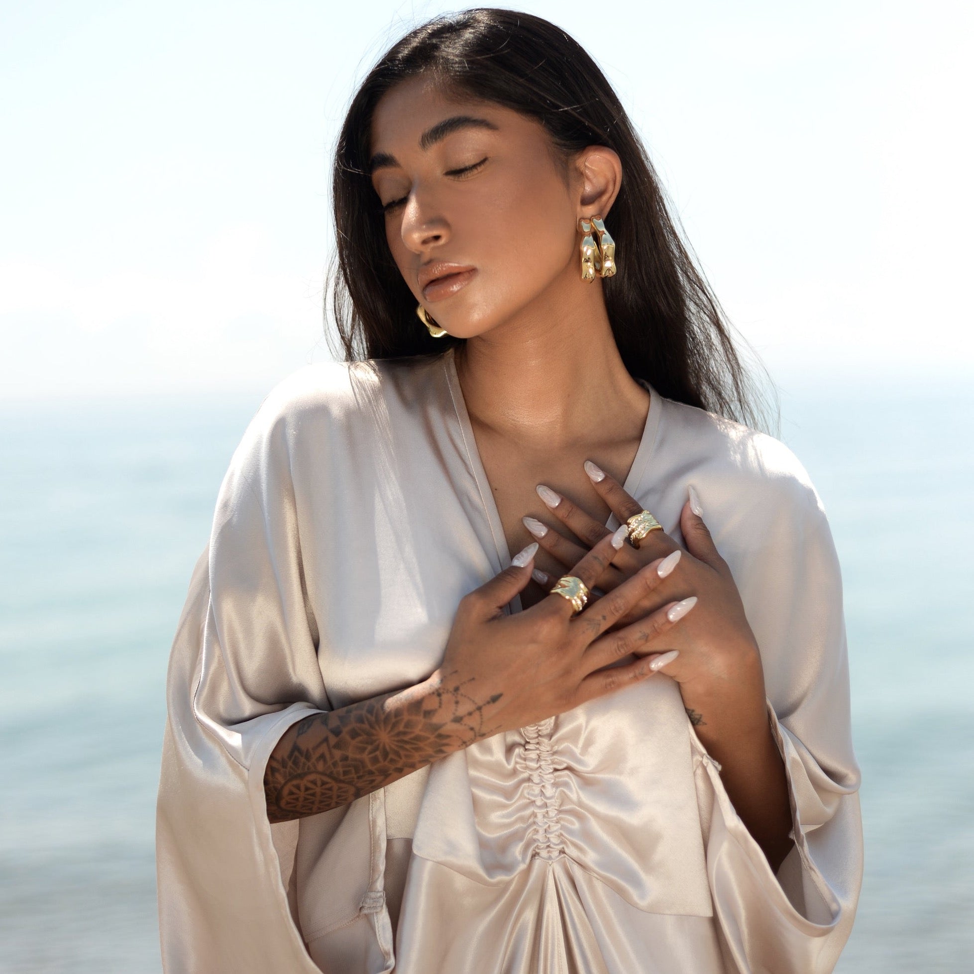 Faites preuve d'audace avec ces anneaux Shara. Nommé d'après Shara et inspiré par ses origines sud-asiatiques, le style luxueux de ces anneaux vous fera vous sentir belle et unique. Faites tourner les têtes avec nos cerceaux Shara.
