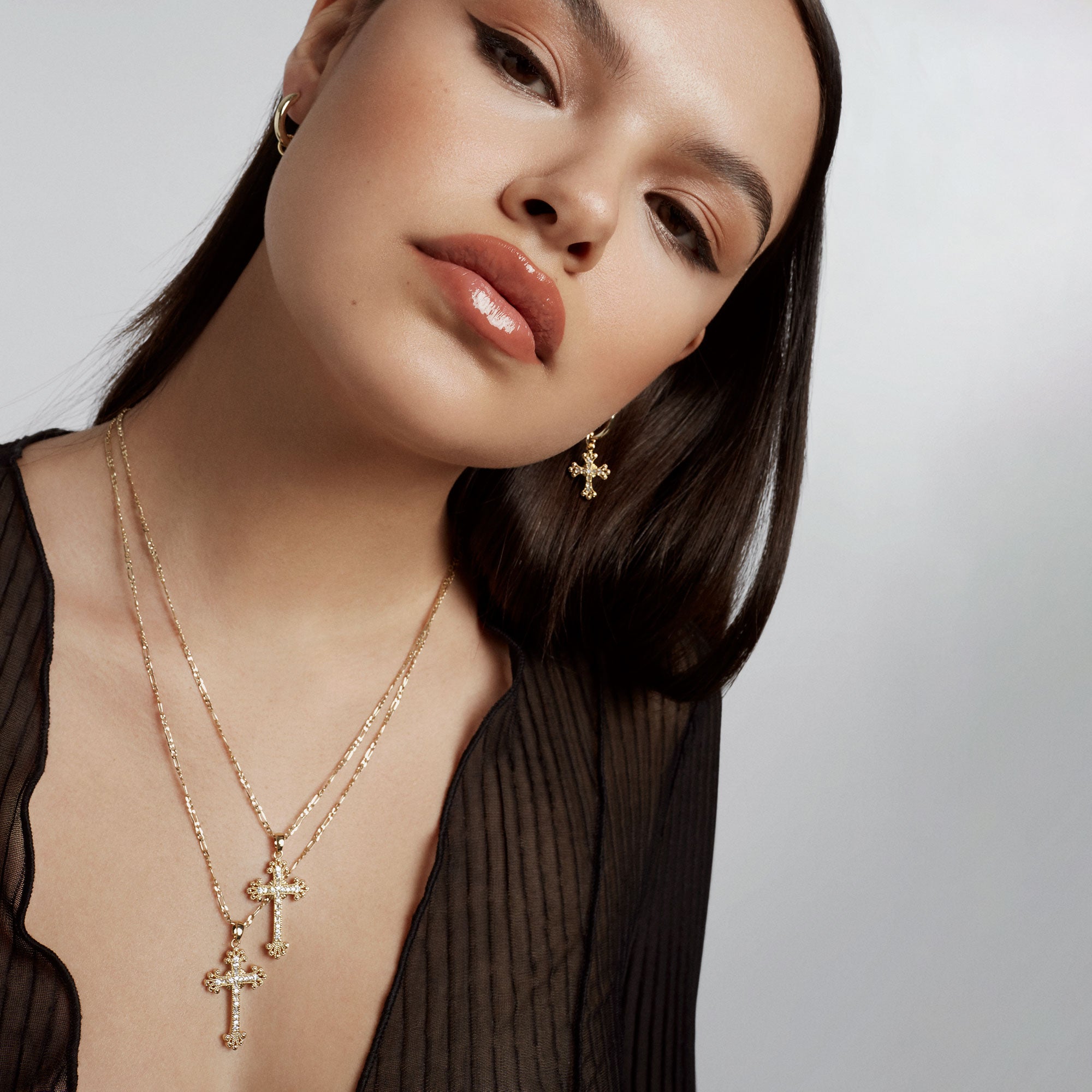 Notre nouvelle croix gothique avec ses détails complexe, nous rend nostalgique avec son allure de Buffy contre les vampires. Avec le retour des détails punk et gothiques, ce collier gravite vers des références nostalgiques et rebelles.