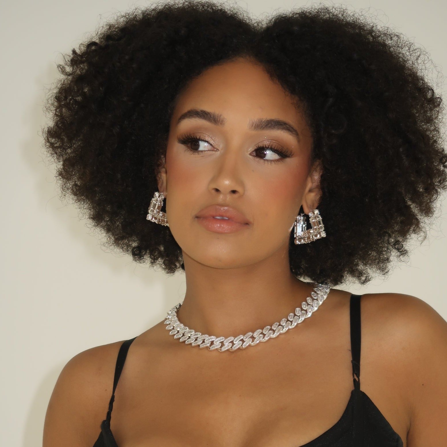 Ce tour de cou cubain Adaya est une pièce audacieuse avec une touche de nostalgie. Incrusté de cristaux de qualité supérieure et léger mais luxueux, il est parfait pour celles qui souhaitent adopter le style hip-hop des années 90.