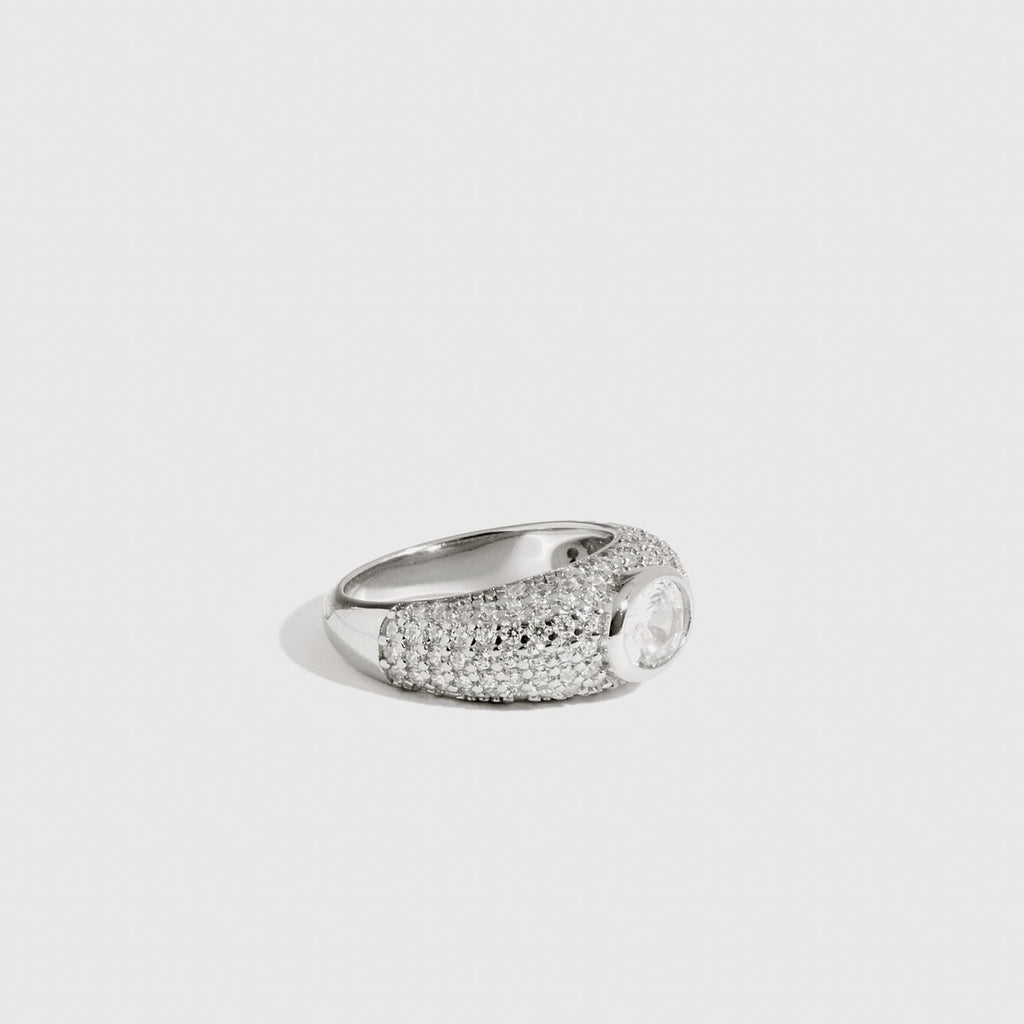 Le volume à son meilleur, cette bague pavée est l'indispensable luxe pour la juxtaposition.