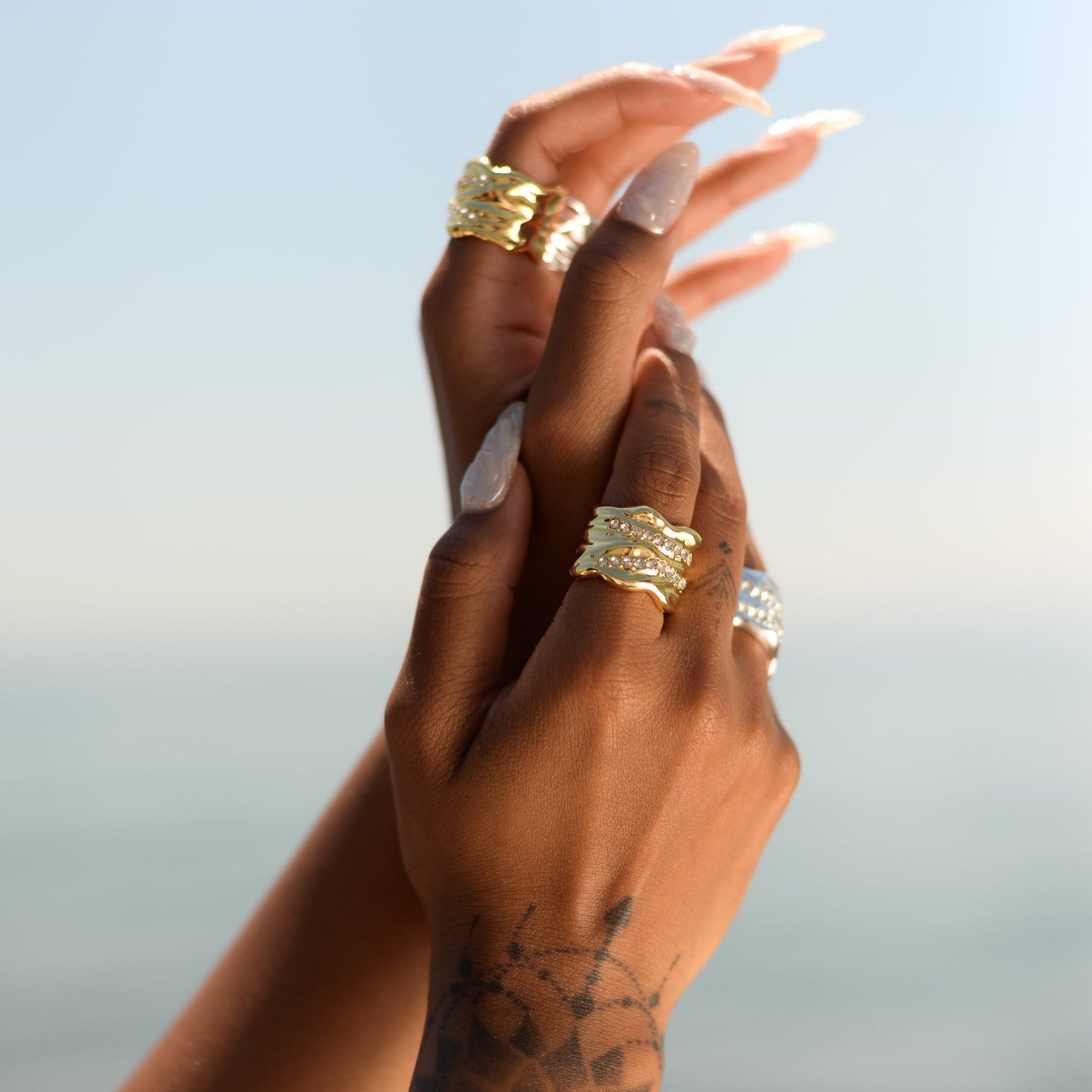 Be bold and make a statement with the Bara Ring. Inspired by Shara's native language, the ring offers an abstract design and intricate details that will empower you. Let your inner goddess shine and sparkle with this unique ring.