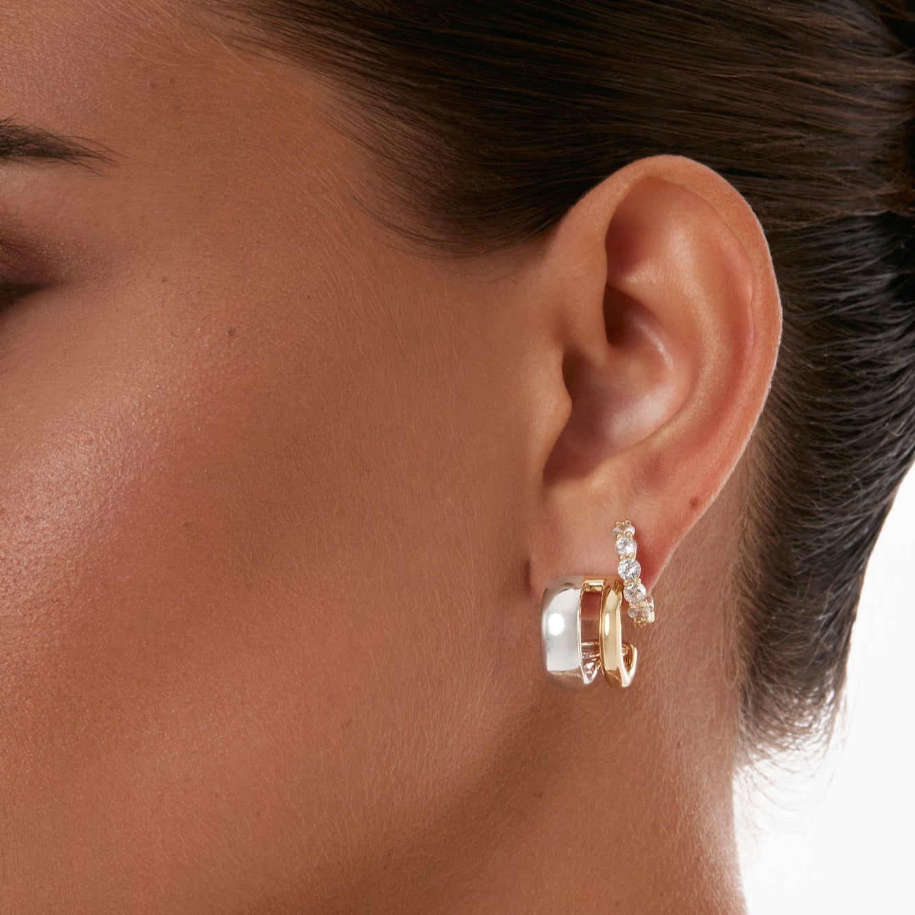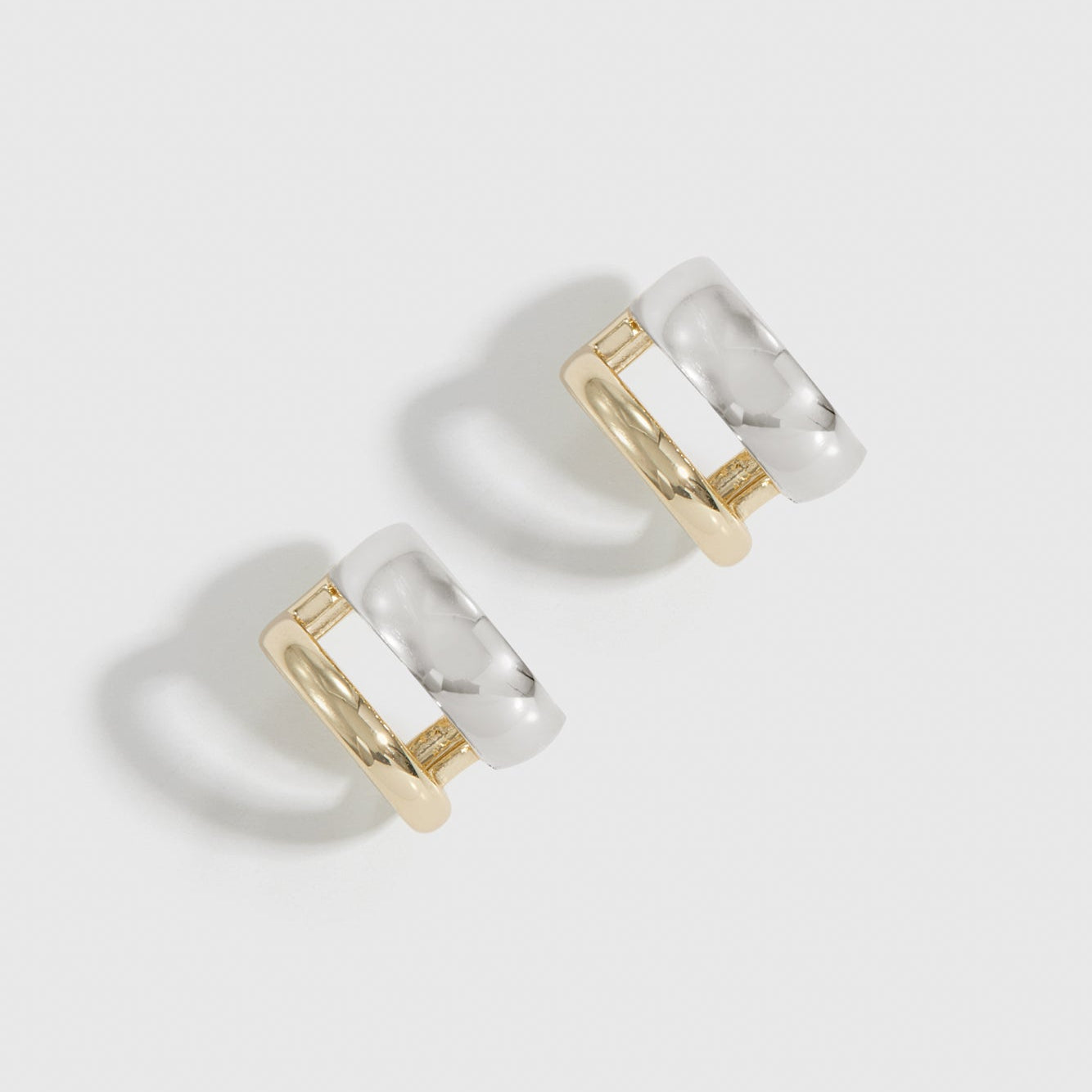 The Double Bare Hoop Earrings feature a sleek dual-hoop design that embodies understated elegance.