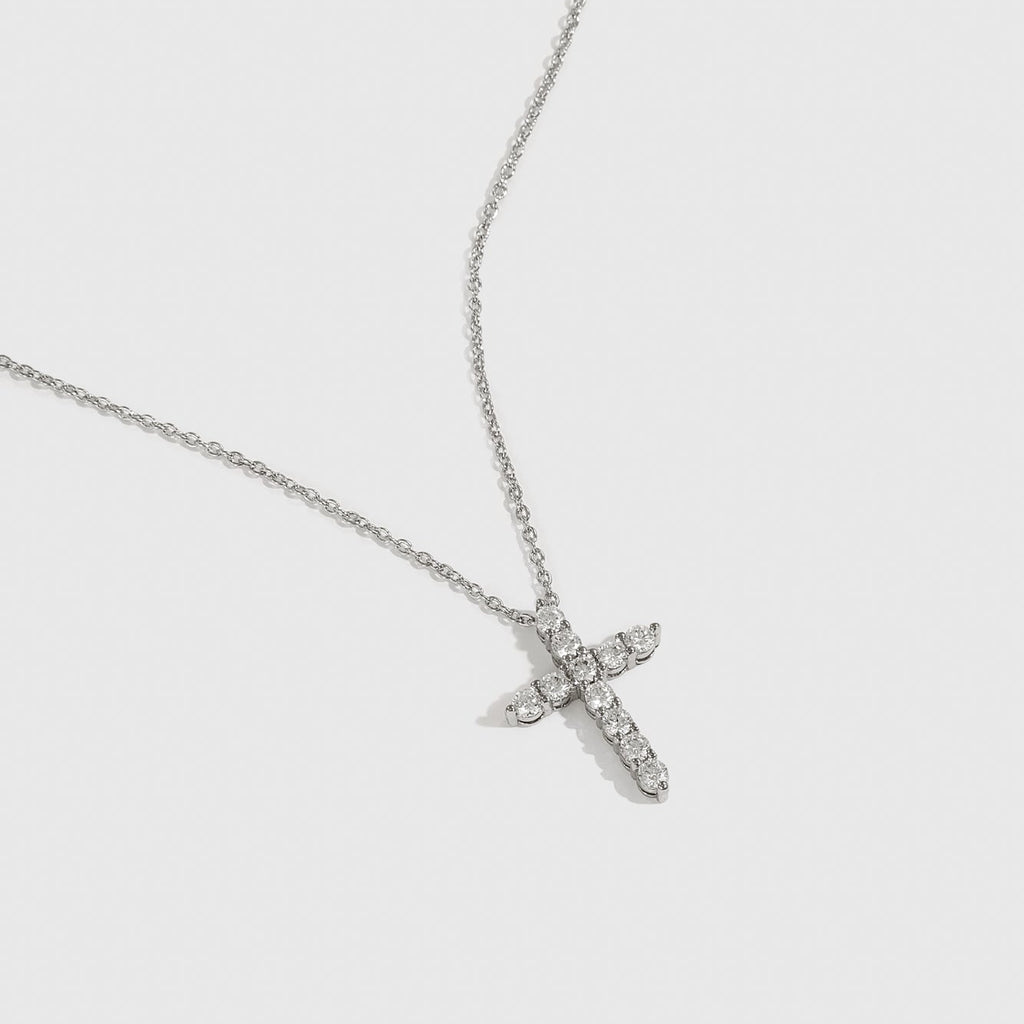 This timeless cross sparkles and shines, adding enduring elegance to any look.