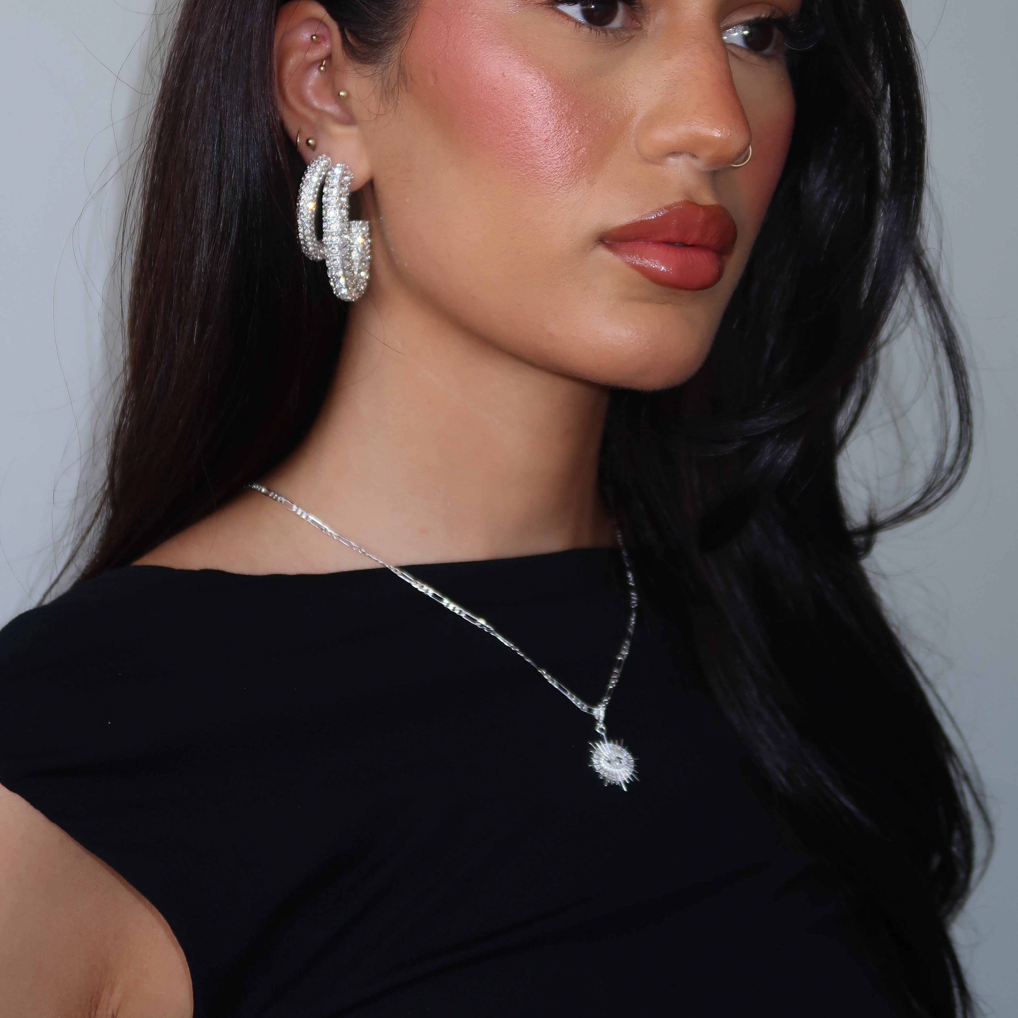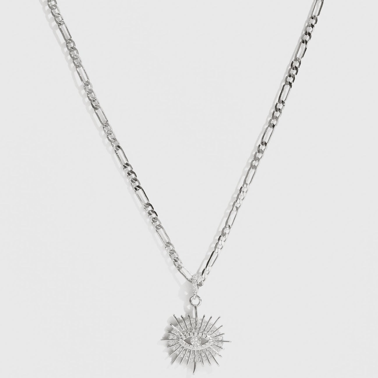 Glam up your look with the sparkly Sundaze Evil Eye Necklace. This dainty pendant features a pave setting to protect your energy and make a statement wherever you go. Perfect for stacking and a symbol of protection.